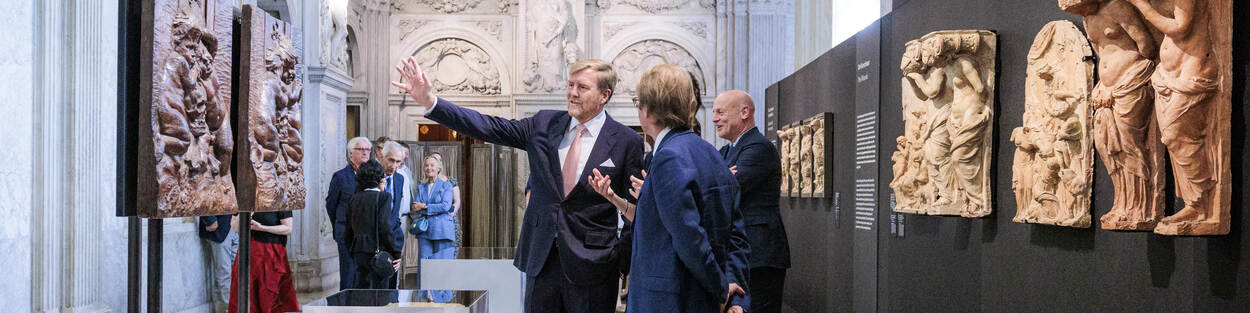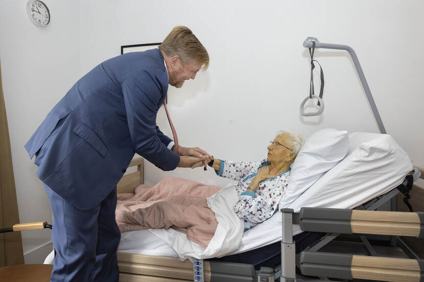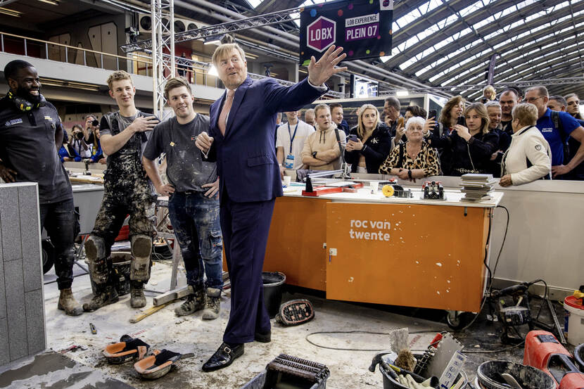Koning Willem-Alexander en de minister van Financiën, Eelco Heinen, brengen een werkbezoek aan het Agentschap van de Generale Thesaurie van het ministerie van Financiën.