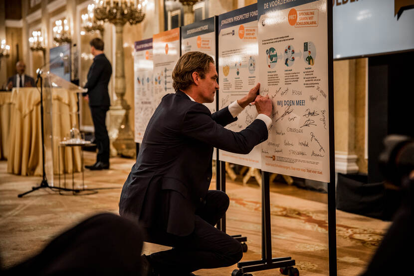 Een groot aantal gemeenten is aan de slag met één of meer methoden om mensen schuldenzorgvrij te maken. Tijdens de bijeenkomst wordt het pact bekrachtigd. Ook staatssecretaris Bas van ’t Wout zet symbolisch zijn handtekening om betrokken partijen aan te moedigen verder op te schalen en ook om nieuwe methoden te gaan ontwikkelen. Het kabinet heeft onlangs 146 miljoen euro beschikbaar gesteld om mensen met problematische schulden beter en sneller te kunnen helpen.