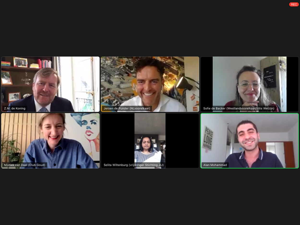 Koning Willem-Alexander brengt een digitaal werkbezoek aan vrijwilligersplatform NLvoorelkaar.