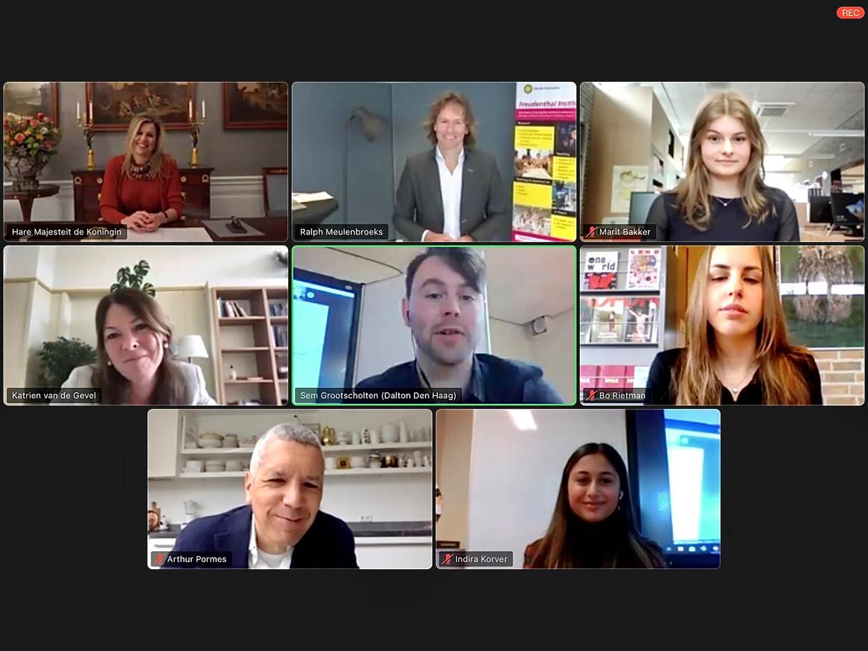 Koningin Máxima brengt een digitaal werkbezoek aan het landelijk platform StudentinzetopSchool. Bij dit platform zijn diverse niet-commerciële initiatieven aangesloten die studenten uit het hoger onderwijs inzetten in het voortgezet onderwijs. Studenten ondersteunen examenleerlingen van het schooljaar 2020-2021 in de voorbereiding op het eindexamen.
