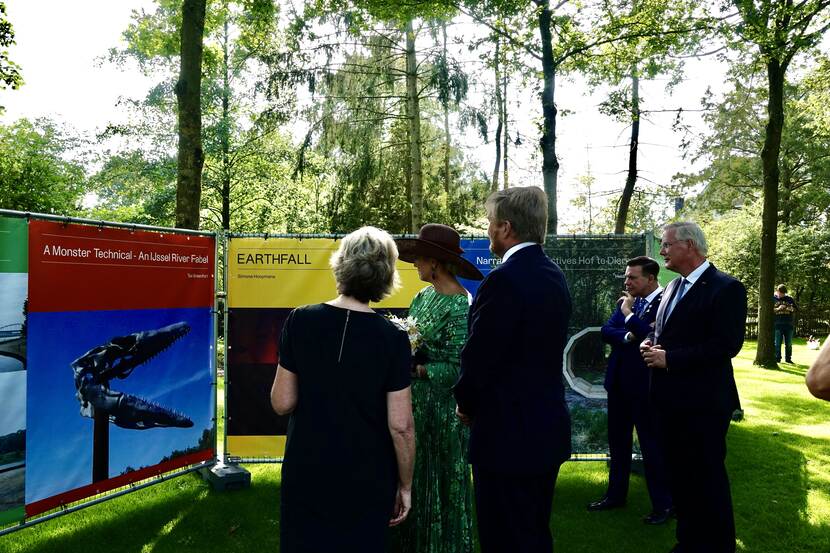 Het streekbezoek aan Salland wordt afgesloten met een bezoek aan een impressie van de buitententoonstelling de IJsselbiënnale. Het Koninklijk Paar bekijkt enkele kunstwerken van de 120 kilometerlange kunstroute langs de IJssel waar de impact van klimaatverandering op het landschap van de IJsselvallei centraal staat.