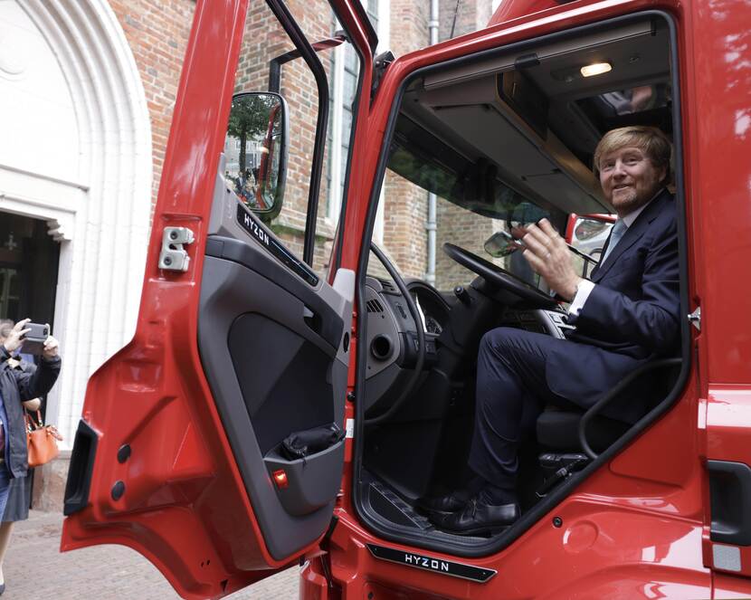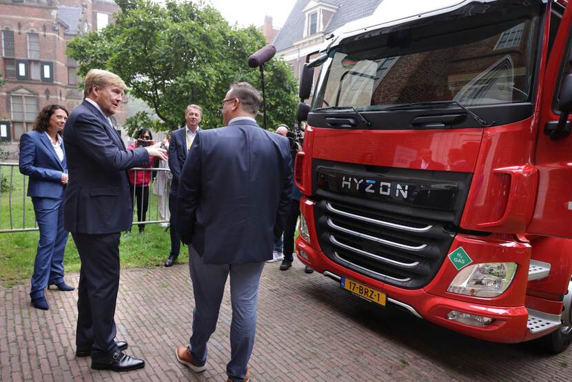 Vervolgens wordt een 3D-presentatie getoond over project HEAVENN en krijgt de Koning aansluitend een toelichting bij een door waterstof aangedreven vrachtwagen. Holthausen/Hyzon Motors uit Winschoten is gespecialiseerd in het maken van op waterstof aangedreven vrachtwagens. In een ‘Hydrogen Valley’ worden productie, distributie, opslag en lokaal eindgebruik van waterstof samengebracht in diverse demonstratieprojecten. Tenslotte bekijkt de Koning een foto-expositie over activiteiten en werkgelegenheid die samengaan met de ontwikkeling van de waterstofketen in de regio.