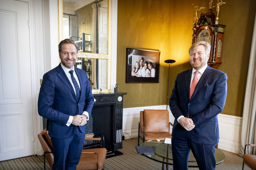 Koning Willem-Alexander ontvangt minister De Jonge voor Volkshuisvesting en Ruimtelijke Ordening. Het betreft het eerste bezoek in een reeks van kennismakingen met de ministers van het kabinet-Rutte IV.