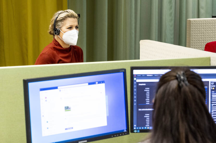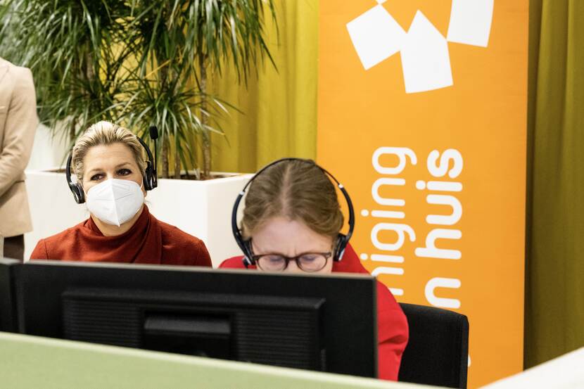 Koningin Máxima sprak met ouderen over de zoektocht naar en het gebrek aan passende, leeftijdsbestendige woningen. Zij luisterde ook mee met enkele telefonische adviesgesprekken.