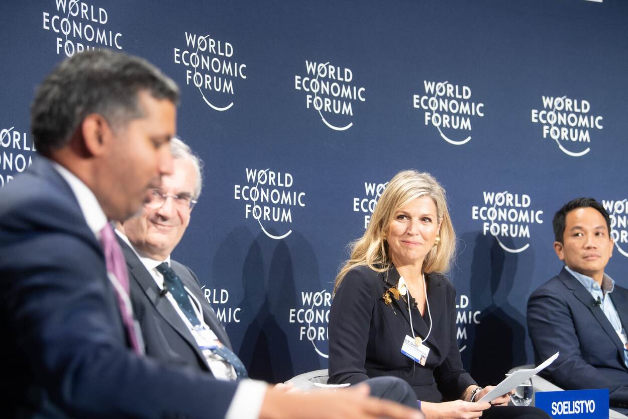 Koningin Máxima bezoekt het World Economic Forum (WEF). Zij doet dit in haar functie van speciale pleitbezorger van de secretaris-generaal van de Verenigde Naties voor inclusieve financiering voor ontwikkeling (UNSGSA).