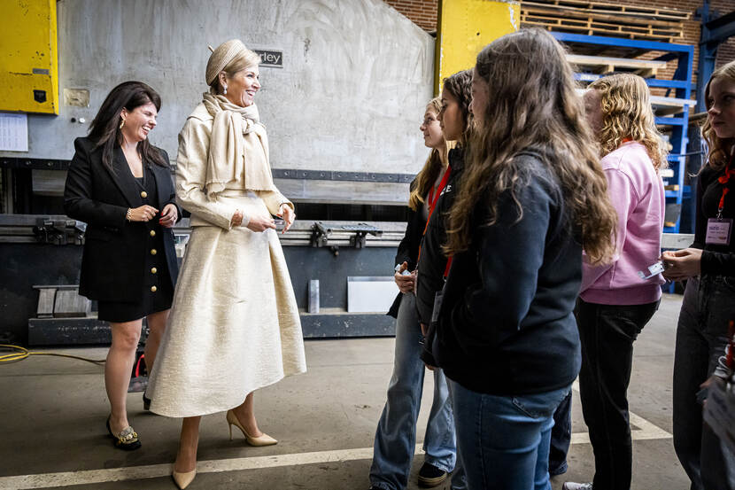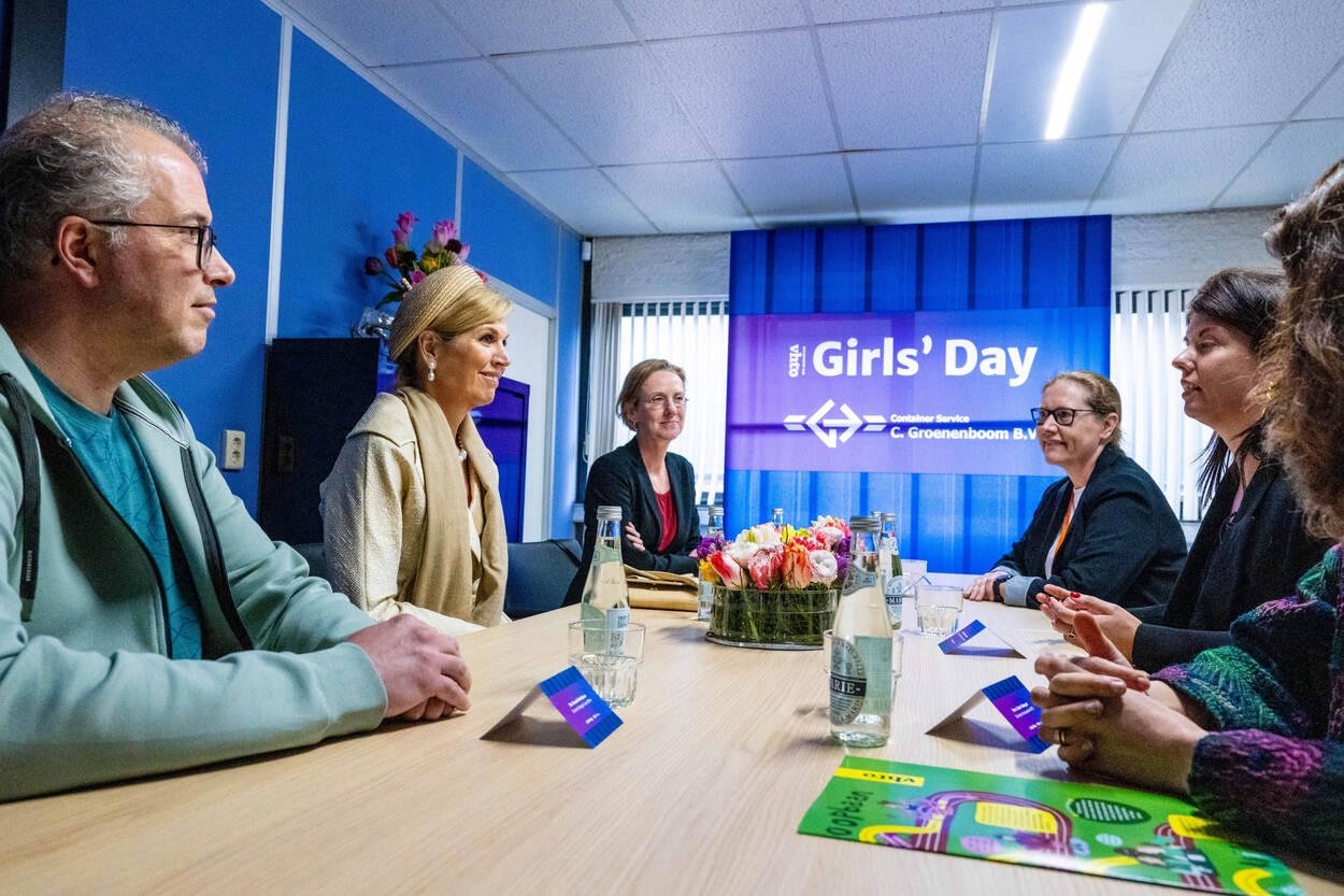 Koningin Máxima brengt een bezoek aan Girls’ Day bij Container Service Groenenboom. Tijdens Girls’ Day gaan meisjes op bezoek bij technische en ICT-bedrijven om kennis te maken met bèta, techniek en ICT en om te ervaren hoe het is om te werken in de techniek.