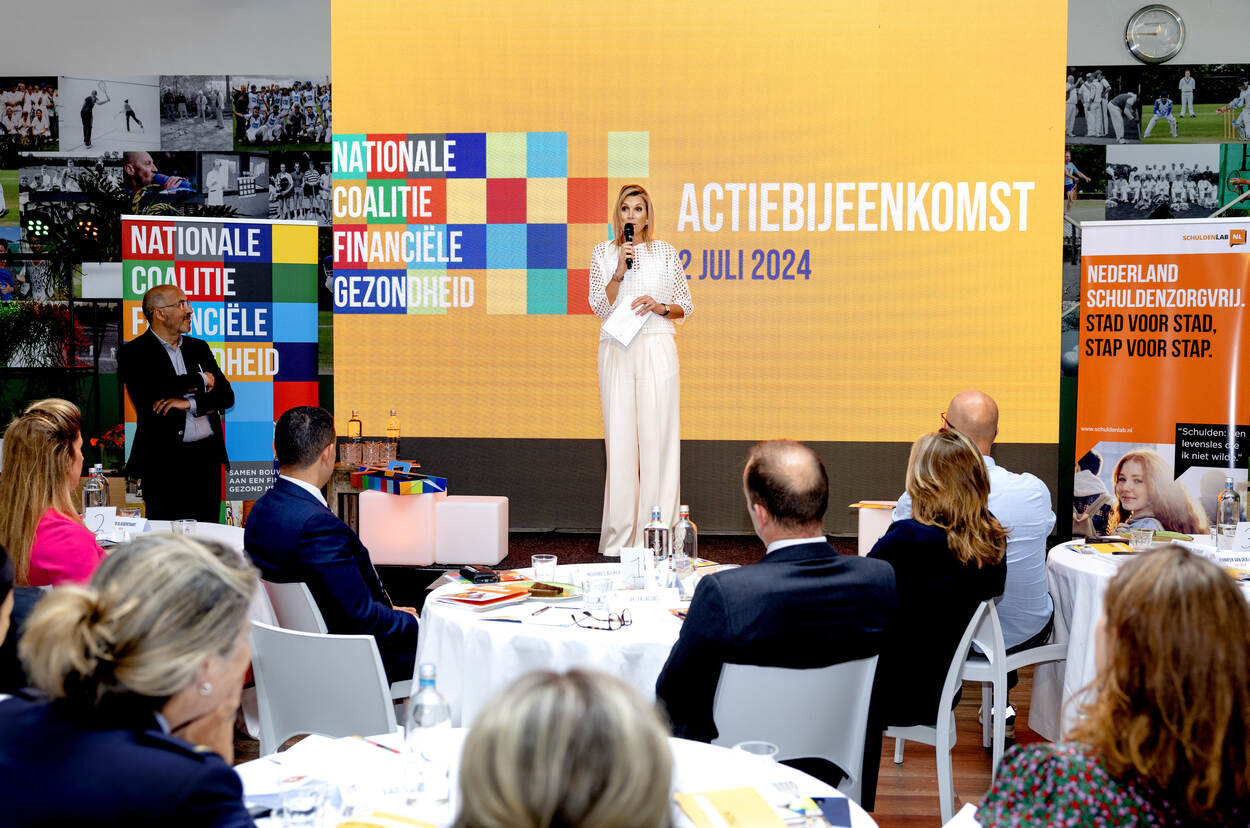 Koningin Máxima woont een actiebijeenkomst bij van de Nationale Coalitie Financiële Gezondheid (NCFG). Dit is een samenwerkingsverband van ruim vijftig bedrijven en overheidsorganisaties die zich inzetten voor de financiële gezondheid van hun werknemers en klanten. Tijdens de bijeenkomst wordt toegelicht wat er tot nu toe is bereikt.