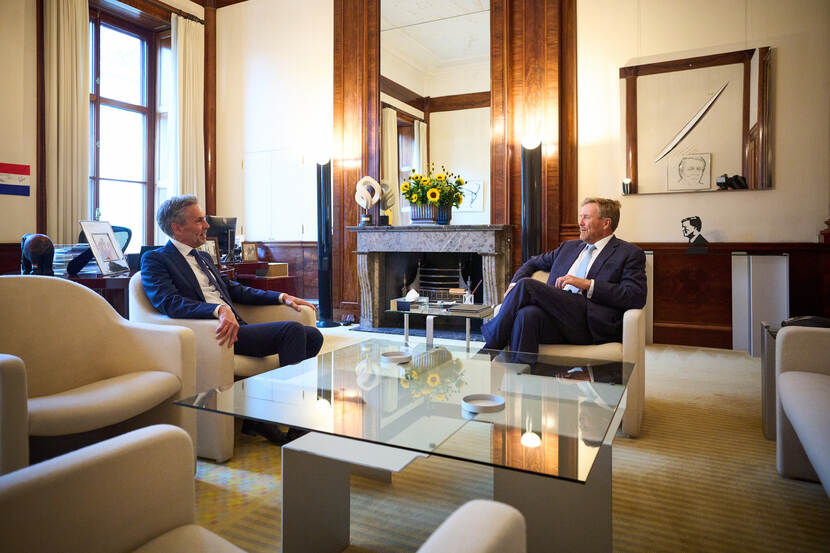 Koning Willem-Alexander voert zijn eerste wekelijkse gesprek met minister-president Schoof na de beëdiging van het kabinet-Schoof op 2 juli 2024. Bijna iedere maandag spreken de Koning en minister-president met elkaar. In deze gesprekken wordt de Koning door de minister-president op de hoogte gehouden van het actuele regeringsbeleid.