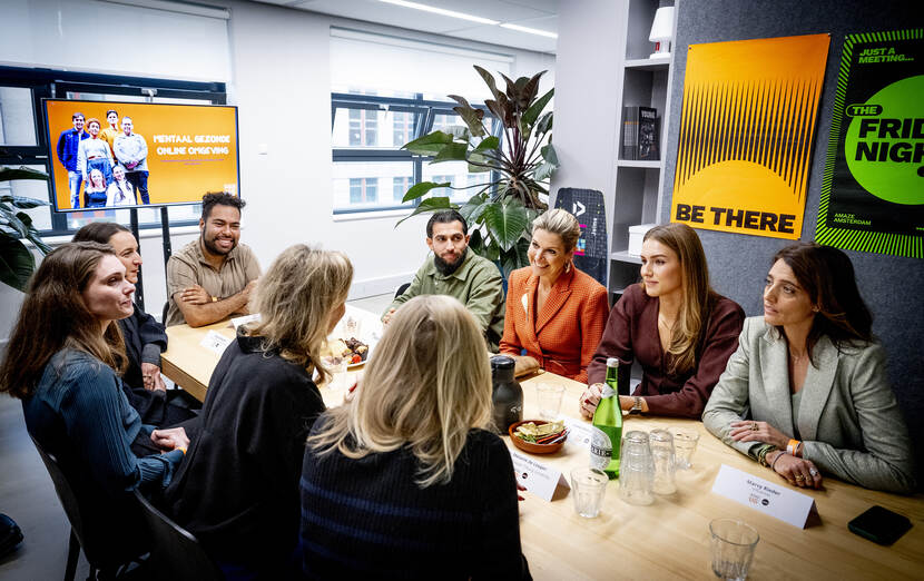 Koningin Máxima, erevoorzitter van Stichting MIND Us, en staatssecretaris Karremans van Jeugd, Preventie en Sport zijn aanwezig bij een bijeenkomst van MIND Us over het bevorderen van een mentaal gezonde omgeving voor jongeren. Centraal staat het versterken van openheid over mentale gezondheid op social media ten behoeve van de veerkracht van jongeren.