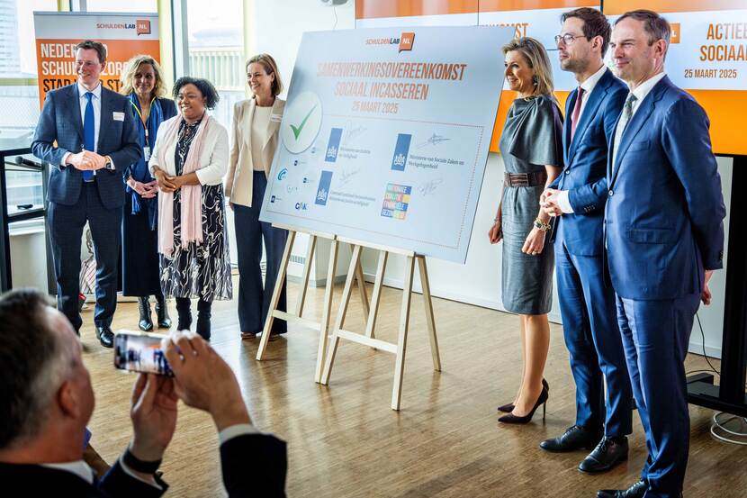 Koningin Máxima woont een bijeenkomst bij van SchuldenlabNL en de werkgroep sociaal incasseren van de Nationale Coalitie Financiële Gezondheid (NCFG). Sociale incasso kenmerkt zich door vroegtijdig persoonlijk contact over betalingsachterstanden, betalingsregelingen op maat, zo laag mogelijke incassokosten en doorverwijzing van financieel kwetsbare huishoudens naar passende ondersteuning.
