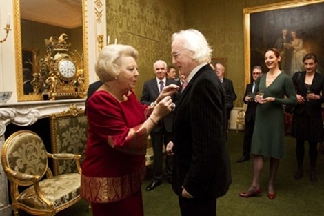 De onderscheiding werd hem hedenmiddag door de Koningin uitgereikt.