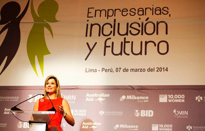 In Peru woont Koningin Máxima een rondetafelsessie bij over de voortgang van de nationale strategie voor Inclusieve Financiering. Ook brengt zij een veldbezoek aan een van de buitenwijken van Lima. Zij spreekt met vertegenwoordigers van organisaties over financiële producten en diensten en hun cliënten. Vrijdagochtend houdt Koningin Máxima een toespraak bij de afsluiting van het programma 'Strengthening Women Entrepreneurship'. Dit internationaal initiatief van onder anderen de Inter-American Development Bank, Mibanco, Thunderbird School of Global Management en de overheid van Australië is gestart in 2010 om 100.000 vrouwen in Peru te steunen bij het ondernemerschap. Hierbij is ook de echtgenote van president Humala aanwezig. Koningin Máxima neemt ook deel aan een rondetafelgesprek met publieke en private partners over de stand van zaken van elektronisch bankieren in Peru. Deze vorm van bankieren maakt financiële diensten ook voor mensen in afgelegen gebieden toegankelijk.