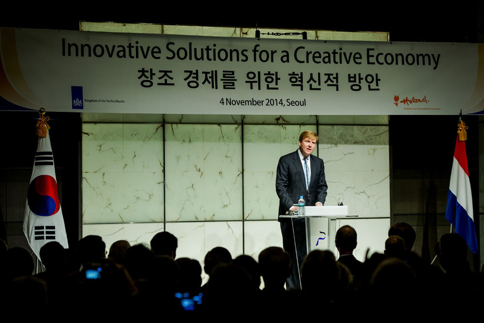 In de namiddag zijn de Koning en Koningin aanwezig bij een seminar over een creatieve en lerende economie. De Koreaanse en Nederlandse regeringen kijken beide naar duurzaamheid van hun economisch model en het nationale vermogen voldoende groei te blijven genereren. Ter bevordering van een creatieve economie zet de Koreaanse regering in op het bevorderen van ICT, Research & Development, Innovatie en deregulering. Ook in Nederland speelt dit thema. De WRR kwam in haar onderzoek naar het toekomstige verdienmodel van de Nederlandse economie recent met een reeks aanbevelingen, met name gericht op een voortdurend lerende economie. Bij het seminar spreken Nederlandse en Koreaanse wetenschappers en studenten over de raakvlakken en mogelijke verdere samenwerking. De bijeenkomst vindt plaats in de Jeonggak Temple van de Dongguk University.