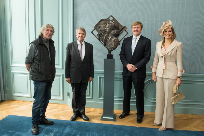 Zijne Majesteit Koning Willem-Alexander en Hare Majesteit Koningin Máxima hebben op vrijdag 22 mei 2015 een dubbelportret in brons aangeboden gekregen van de Raad van State.