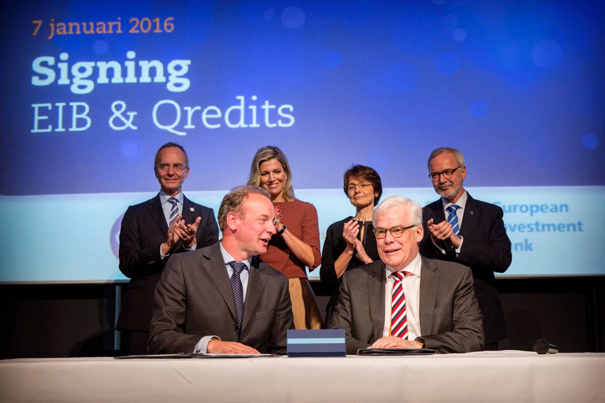 Koningin Máxima bij ondertekening lening Europese Investeringsbank aan Qredits