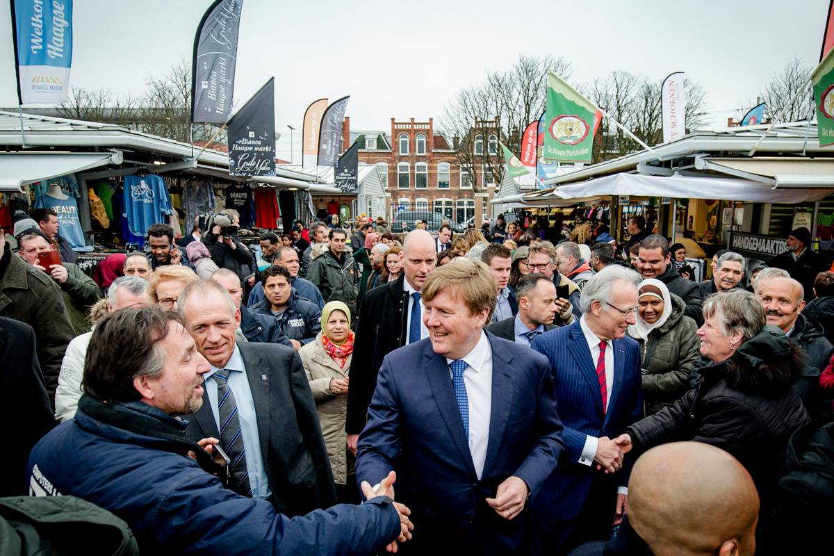 De Koning sprak met marktkooplieden die al jaren hun waar verkopen op de Haagse Markt. De markt kenmerkt zich door een multicultureel aanbod. In buurthuis Boerenplein sprak de Koning over een aantal sociale ondernemersinitiatieven in de wijk. Royaal Zorg is een zorgorganisatie voor allochtone ouderen die zich richt op specifieke zorgwensen. Resto van Harte verbindt mensen uit verschillende lagen van de bevolking en culturen door voor hen te koken. Iedere donderdagavond kunnen kinderen en hun ouders aanschuiven voor een goedkope en gezonde maaltijd. Tijdens het diner presenteren organisaties als de bibliotheek, jeugdwerk en banken hun initiatieven om het belang van lezen, bewegen en het leren omgaan met geld onder de aandacht te brengen. Aps recycling heeft jongeren in dienst die moeilijk aan een baan kunnen komen. Zijn bedrijf biedt de marktkooplieden opruim- en schoonmaakdiensten.