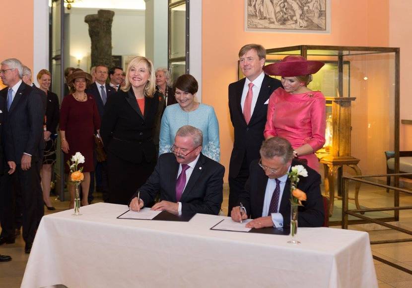 De Koning en Koningin beginnen hun bezoek in de Alte Pinakothek München. Na een renovatieperiode heropenen zij de ‘Holländer-Saal’ van het museum, waar een verzameling meesterwerken van Nederlandse schilders uit de Gouden Eeuw hangt. Het Centraal Museum Utrecht tekent in bijzijn van het Koninklijk Paar een overeenkomst met de Bayerische Staatsgemäldesammlungen over een gezamenlijke Caravaggisten-tentoonstelling in 2018 en 2019.