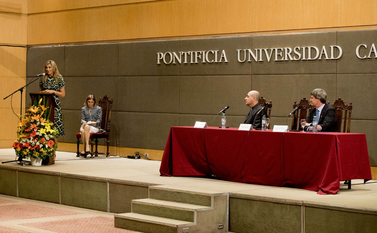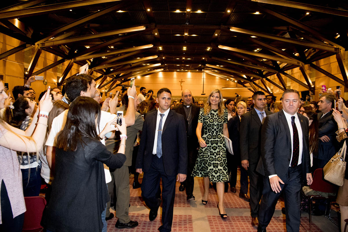 Dinsdagmiddag 11 oktober houdt Koningin Máxima bij de Universidad Católica Argentina (UCA) een toespraak voor studenten economie en politicologie over het belang van goede aansluiting bij de officiële financiële infrastructuur. Toegang tot een bankrekening, op een veilige manier kunnen sparen, verzekeringen en leningen kunnen afsluiten en pensioenopbouw bieden kansen op economische ontwikkeling. Woensdag 12 oktober is een ontmoeting voorzien met president Mauricio Macri. Koningin Máxima had dit jaar in Davos tijdens het World Economic Forum in haar VN-functie ook ontmoetingen met president Macri, minister Prat-Gay en gouverneur Sturzenegger.
