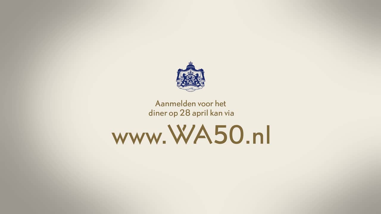 Via de Facebookpagina van het Koninklijk Huis nodigt de Koning alle inwoners van het Koninkrijk der Nederlanden uit die net als hij jarig zijn op 27 april én dit jaar een kroonjaar bereiken zich aan te melden via de website www.WA50.nl. De jarigen kunnen ook door een ander worden opgegeven voor het diner. Opgeven kan vanaf de leeftijd van 20 jaar. De aanmeldtermijn sluit op 3 maart 2017. Uit de aanmeldingen worden 150 gasten via loting geselecteerd.