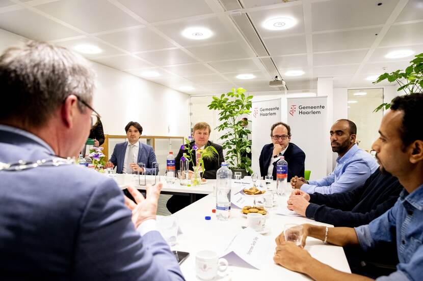 In Haarlem voerden de Koning en de minister eerst gesprekken in stadskantoor Raakspoort. Het eerste gesprek ging over de rol van de gemeente bij de inburgering en vooral bij het aan het werk helpen van statushouders (traject ‘aan de slag’). Het tweede gesprek was met statushouders en hun klantmanagers.