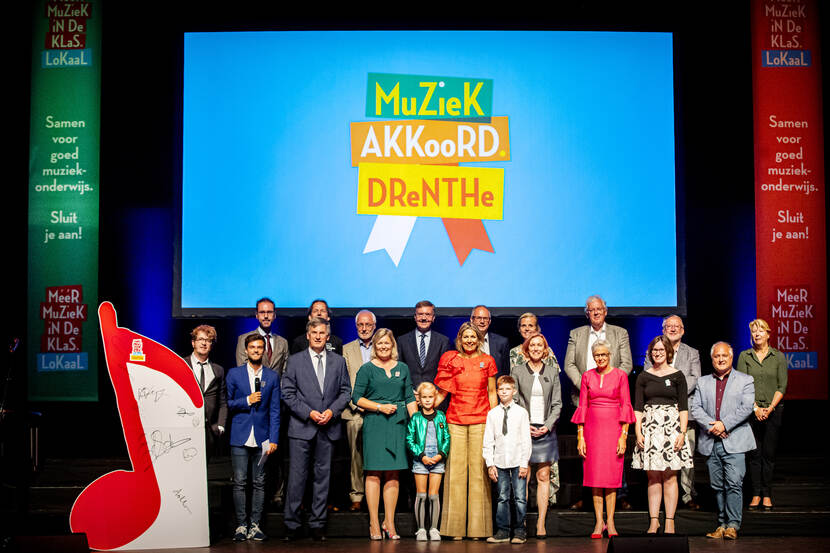 Koningin Máxima bij ondertekening convenant Méér Muziek in de Klas Lokaal in Drenthe