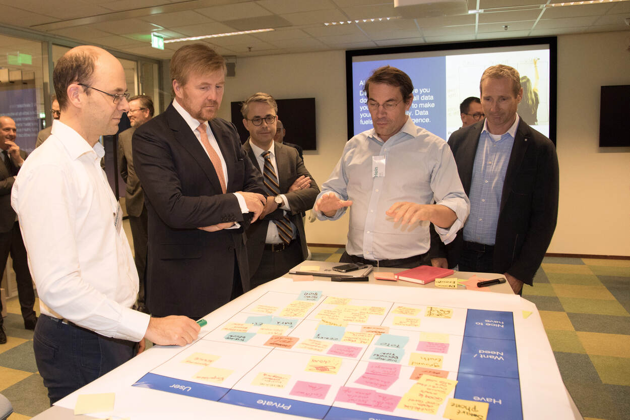 Bij IBM woonde de Koning een demonstratie bij over de Rotterdamse haven waar realtime weer- en waterdata worden gebruikt om het scheepvaartverkeer en het laden en lossen te plannen. Ook was de Koning bij een demonstratie waarbij via blockchaintechnologie elektrische auto’s en huishoudbatterijen kunnen worden ingezet om het hoogspanningsnet in balans te houden. Hiernaast vond er een ontmoeting plaats met het IBM Innovation Team, dat met een aantal scale-up bedrijven een innovatiebrainstorm hield.