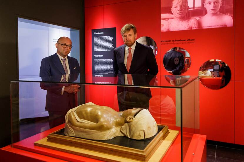 Koning Willem-Alexander opent de tentoonstelling ‘Besmet!’ in Rijksmuseum Boerhaave.