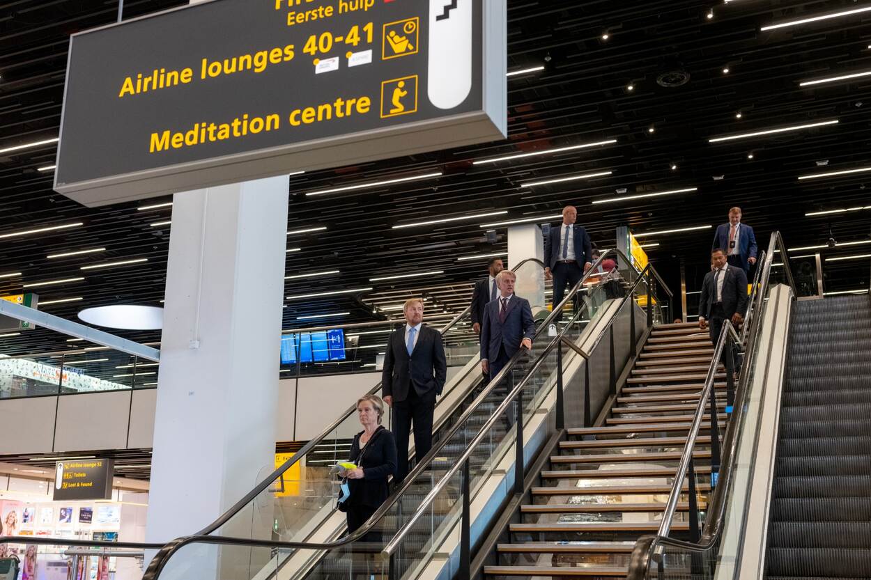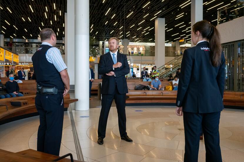 Koning Willem-Alexander brengt een werkbezoek aan Schiphol. Het bezoek vindt plaats in het kader van de impact van de coronacrisis op de luchthaven en de medewerkers.