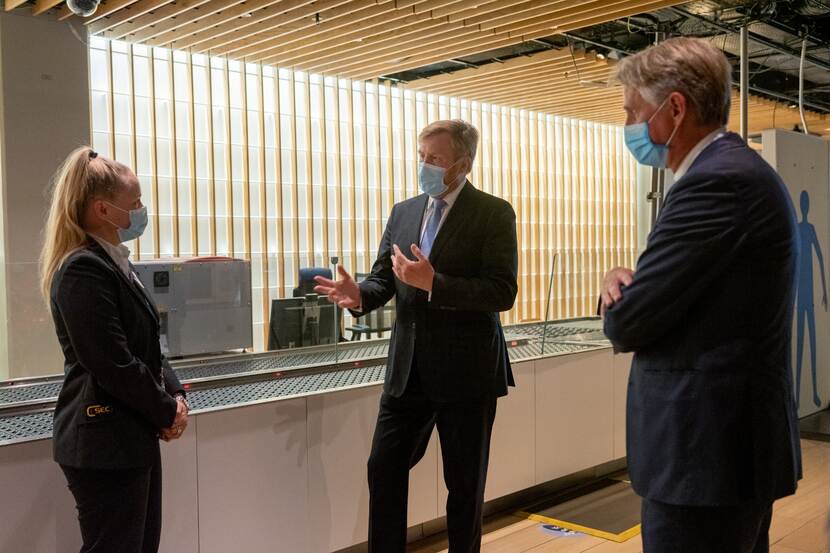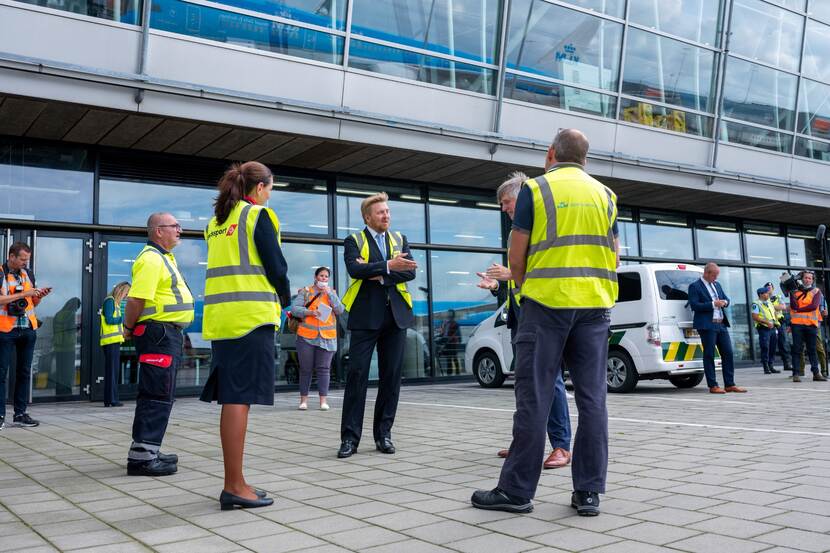 De Koning spreekt verschillende medewerkers die werkzaam zijn op de luchthaven over hoe zij de afgelopen periode hebben ervaren en hun verwachtingen voor de toekomst.