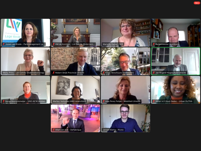 Koningin Máxima, lid van het Nederlands Comité voor Ondernemerschap, brengt samen met SER-voorzitter Mariëtte Hamer een digitaal werkbezoek aan de regio Utrecht. Het bezoek staat in het teken van de ontwikkelingen op de arbeidsmarkt tijdens de coronacrisis en de consequenties daarvan voor de toekomst. Koningin Máxima, Mariëtte Hamer en medelid van het Comité Meiny Prins, nemen deel aan drie gesprekken.