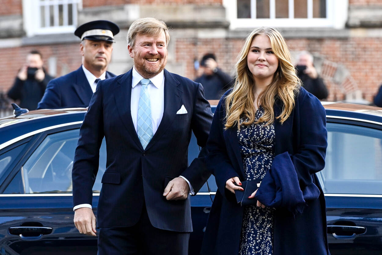 De Prinses van Oranje wordt woensdagmiddag 8 december 2021 binnengeleid in de Raad van State door Zijne Majesteit de Koning, ...