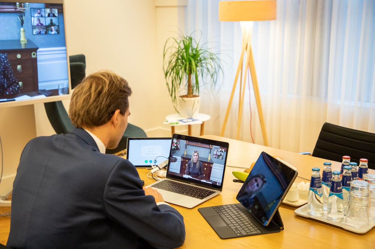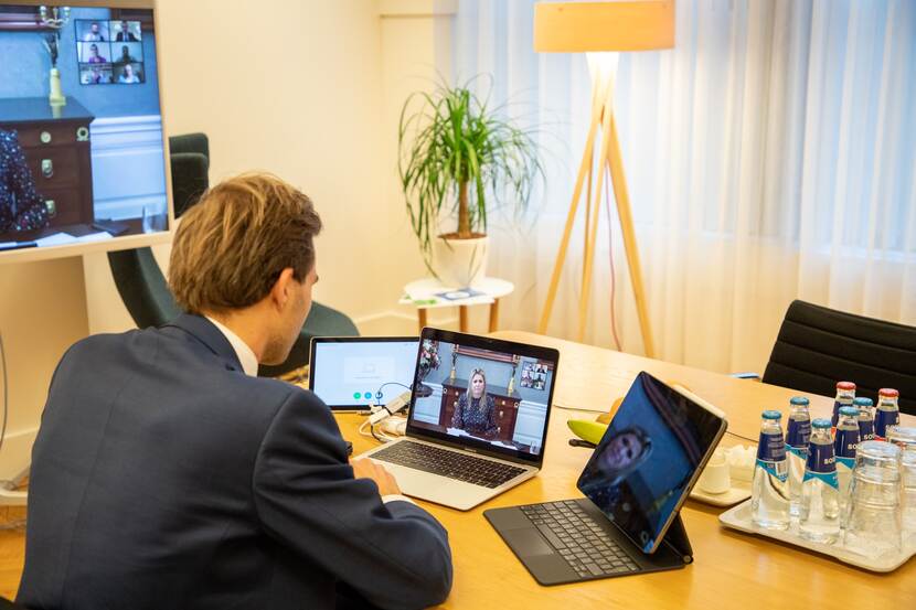 Koningin Máxima neemt deel aan de online interactieve denksessie ‘De twee gezichten van social media’.