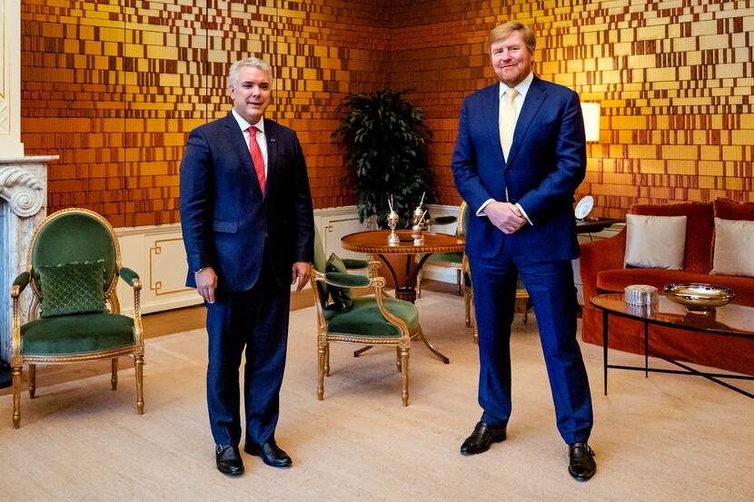 Koning Willem-Alexander ontvangt de president van Colombia, Iván Duque, in audiëntie.