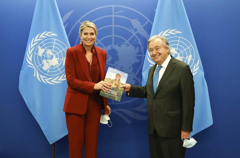 De toespraak is uitgesproken in het Engels. Koningin Máxima is speciale pleitbezorger van de secretaris-generaal van de Verenigde ...
