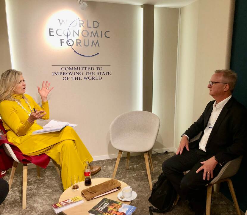 Koningin Máxima bezoekt het World Economic Forum (WEF). Zij doet dit als speciale pleitbezorger van de secretaris-generaal van de Verenigde Naties voor inclusieve financiering voor ontwikkeling (UNSGSA). Het thema van het WEF dit jaar is 'Cooperation in a fragmented World'.