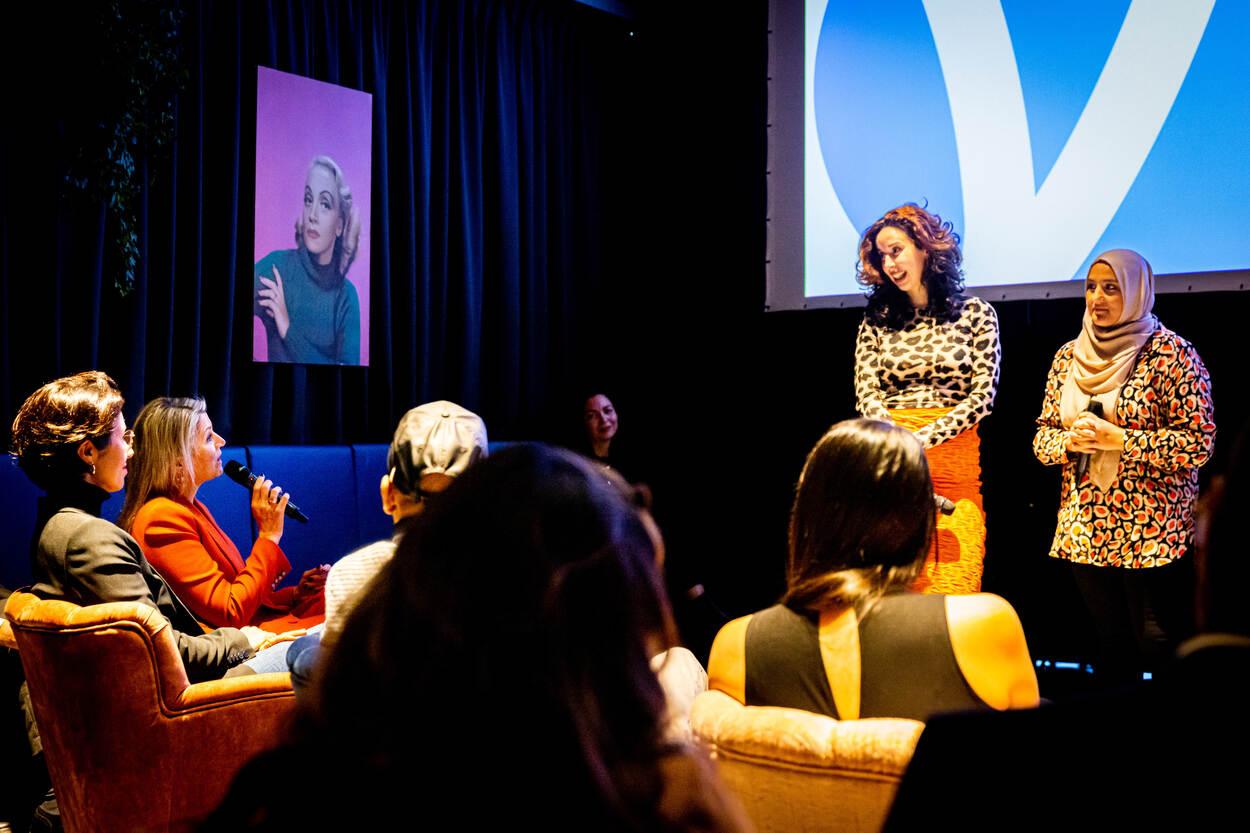Koningin Máxima en staatsecretaris Uslu voor Cultuur en Media bezoeken ROSE academy. Het bezoek staat in het teken van de ontwikkeling van nieuwe talenten met een biculturele achtergrond in de audiovisuele sector.