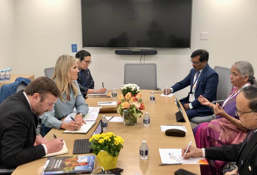 Koningin Máxima woont de voorjaarsvergadering bij van het IMF en de Wereldbank in Washington D.C. In haar functie van speciale pleitbezorger van de secretaris-generaal van de Verenigde Naties voor inclusieve financiering voor ontwikkeling (UNSGSA) gaat zij in op het belang van financiële gezondheid en een goede digitale publieke infrastructuur voor financiële diensten.