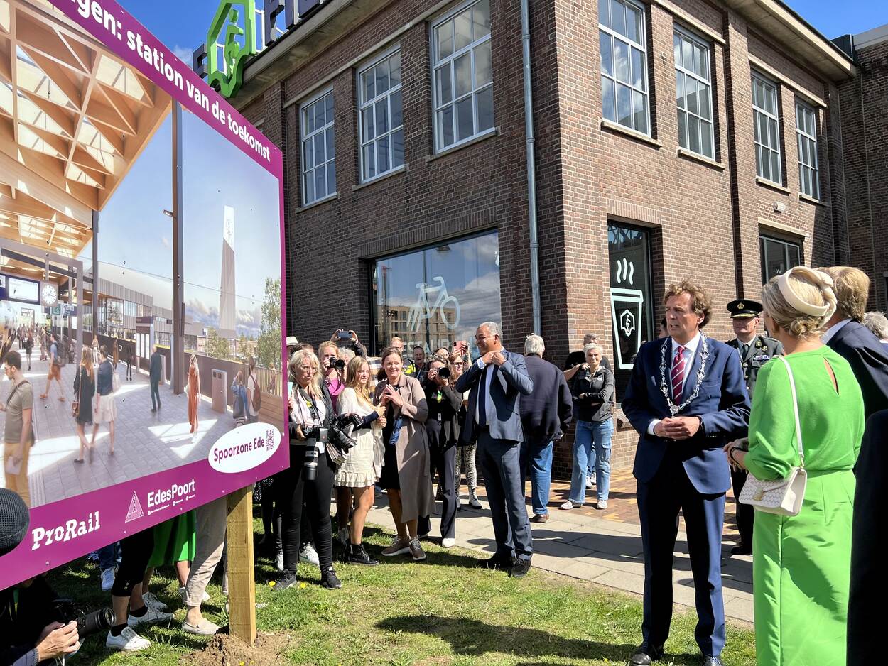 Het Koninklijk Paar krijgt uitleg over de ontwikkeling van het gebied rond het naastgelegen treinstation.