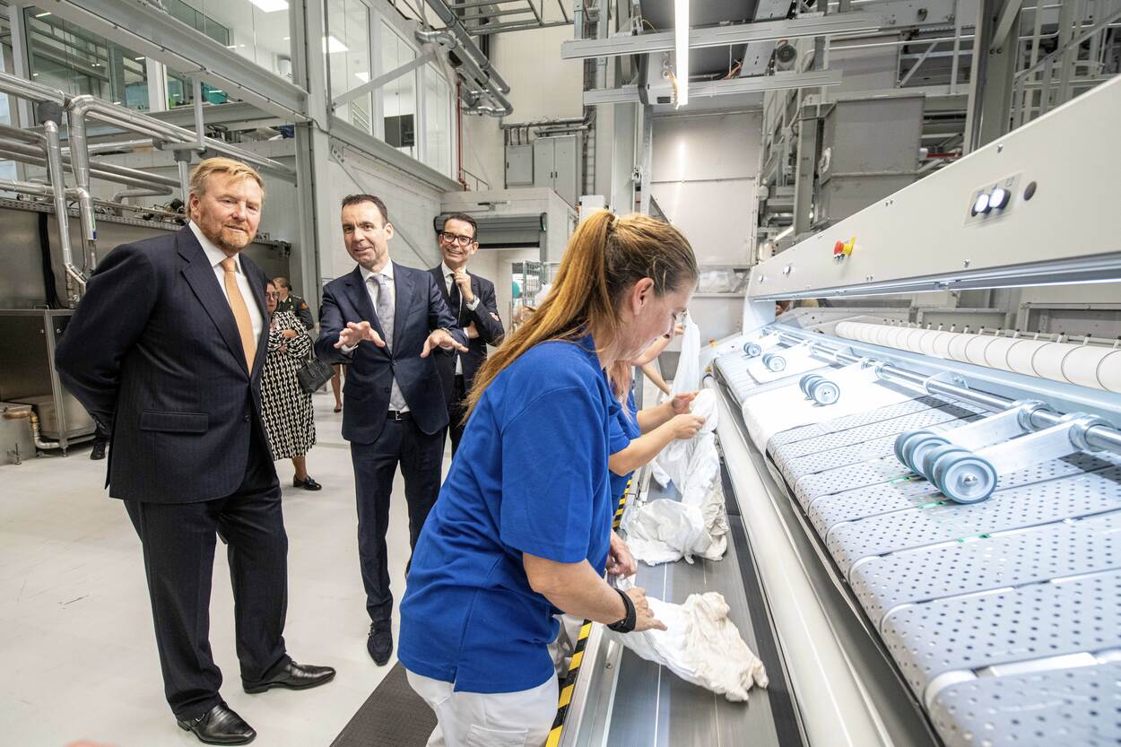 Koning Willem-Alexander opent de nieuwe, duurzame wasserij van Nedlin. Het familiebedrijf verzorgt vanuit Zuid-Limburg wasgoed voor klanten in Nederland, België en Duitsland in de sectoren zorg, horeca en industrie.
