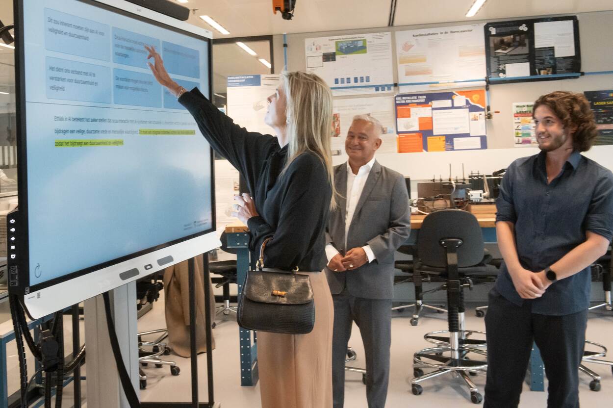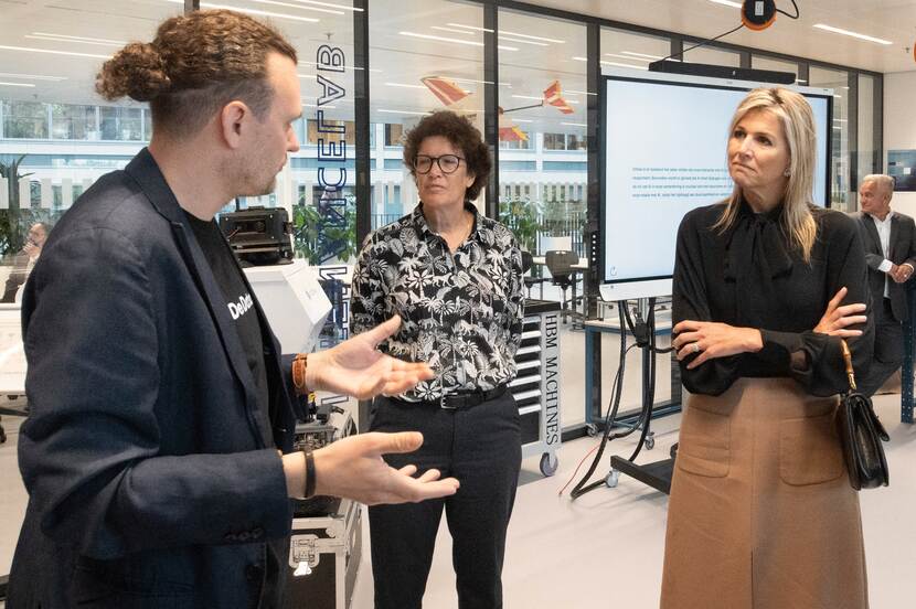 Koningin Máxima brengt een werkbezoek aan het Centre of Expertise Applied Artificial Intelligence van de Hogeschool van Amsterdam (HvA). Het bezoek staat in het teken van het verantwoord gebruiken en toepassen van Artificial Intelligence (AI).