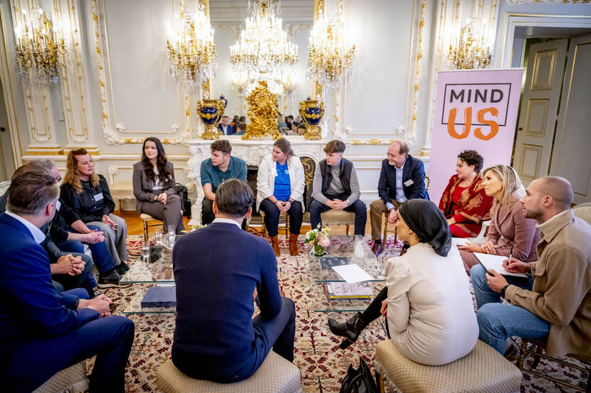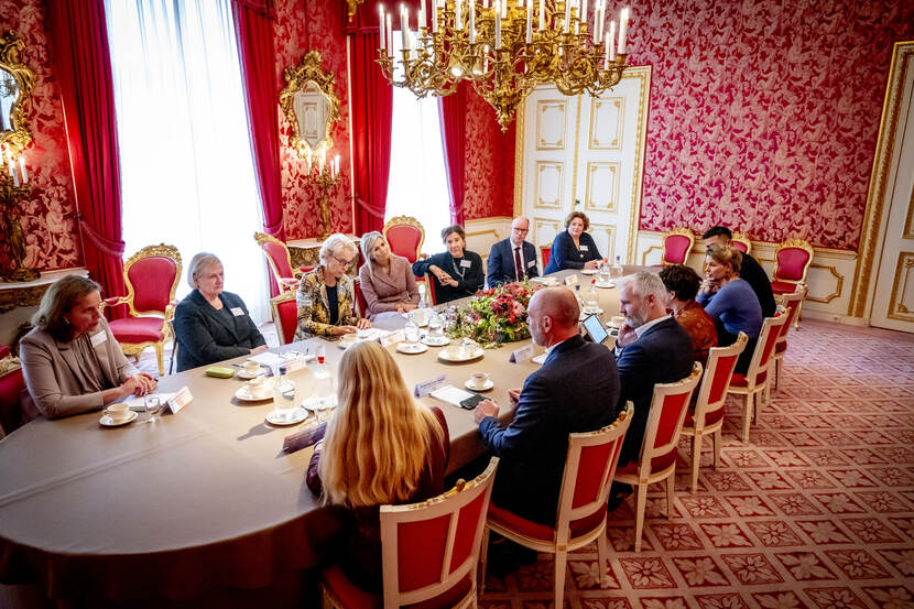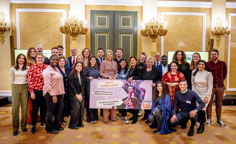 Koningin Máxima ontvangt vertegenwoordigers van gemeenten en maatschappelijke organisaties en jongeren voor de start van het netwerk 'Leading Locals' van MIND Us. Koningin Máxima is erevoorzitter van MIND Us.