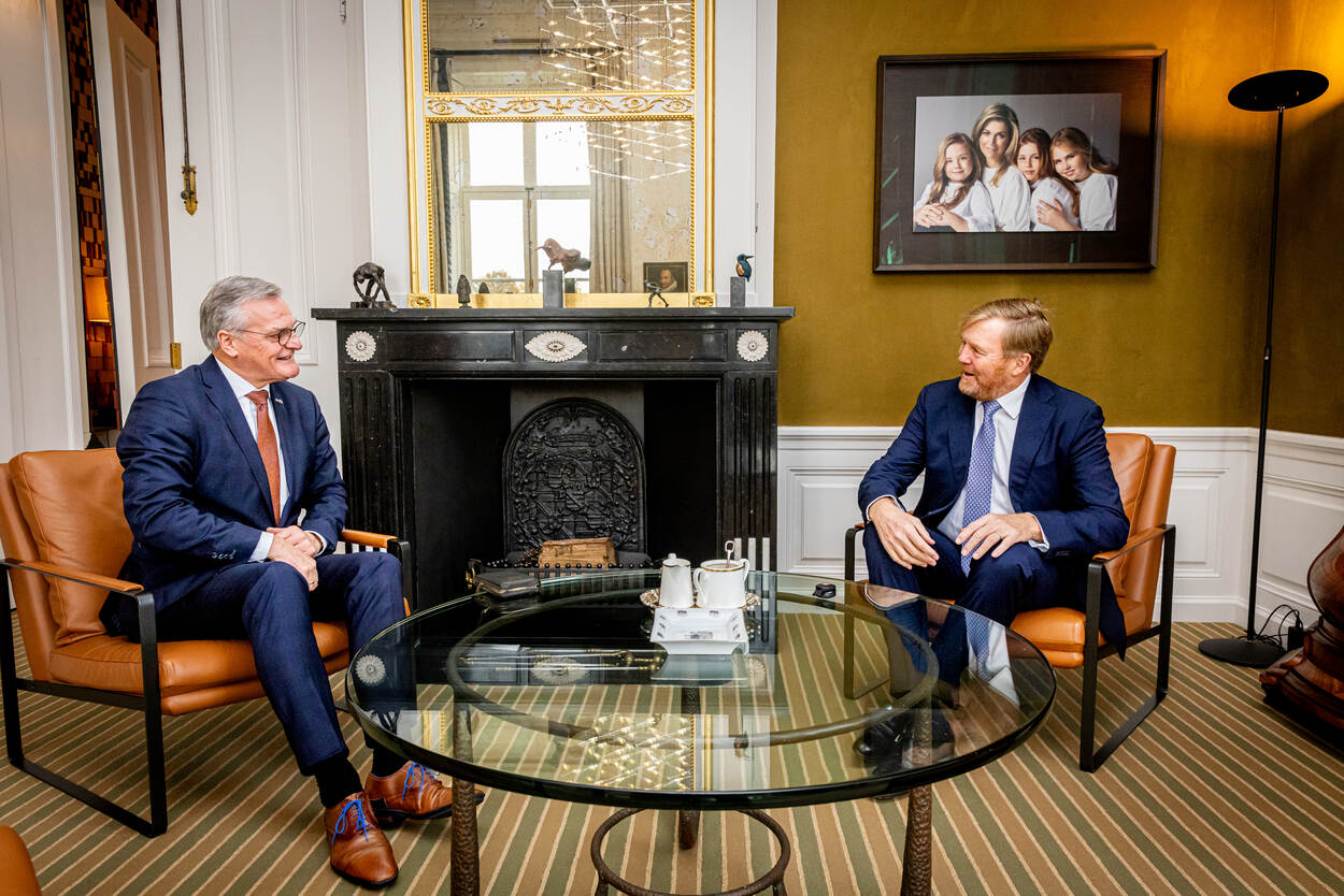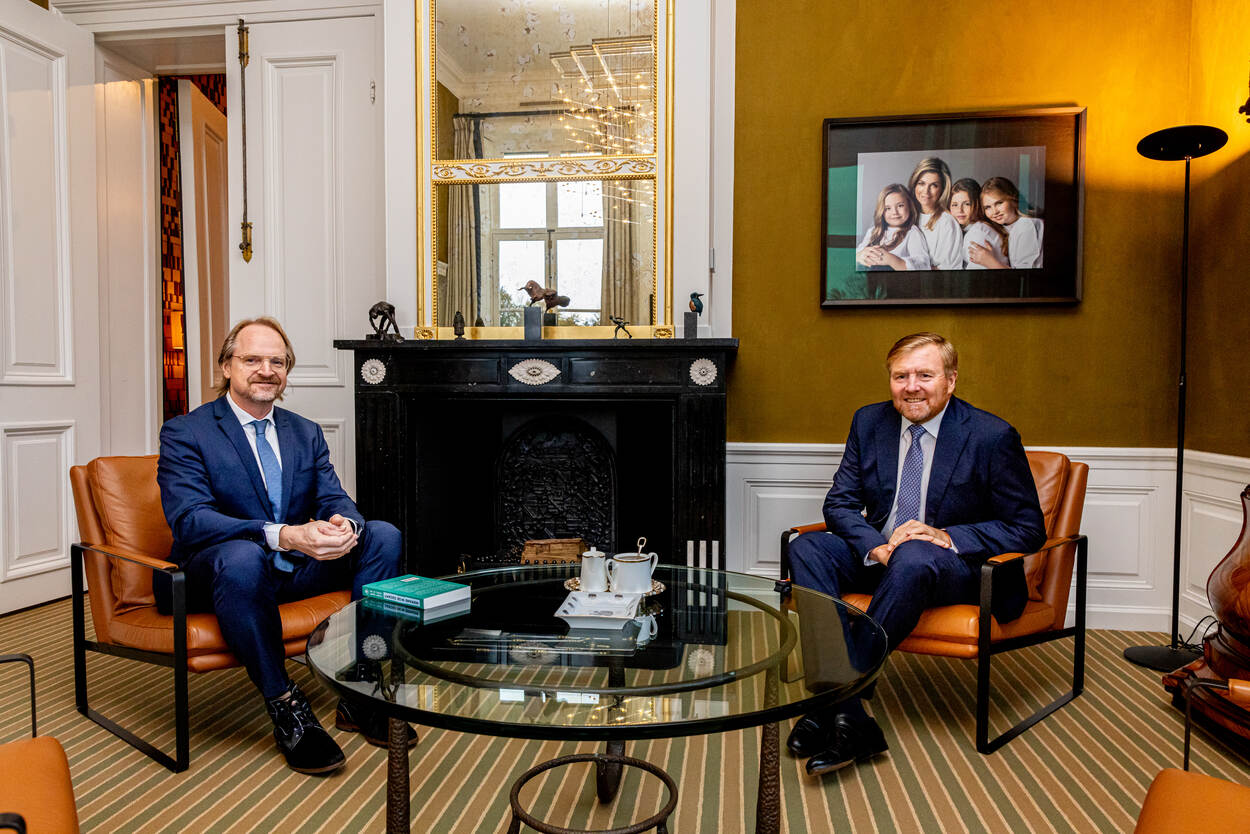 Koning Willem-Alexander ontvangt de voorzitter van de Eerste Kamerfractie van Forum voor Democratie, J. (Johan) Dessing, en vervolgens de voorzitter van de Eerste Kamerfractie van SGP, P. (Peter) Schalk, voor een kennismaking.
