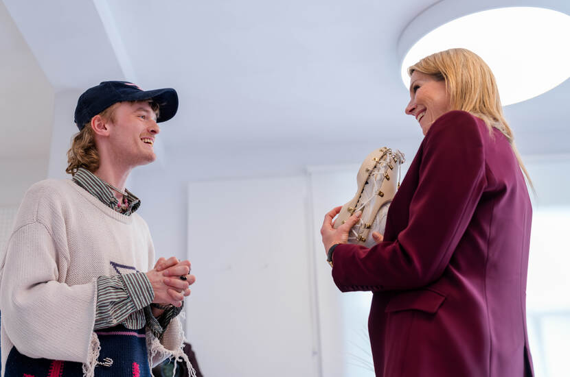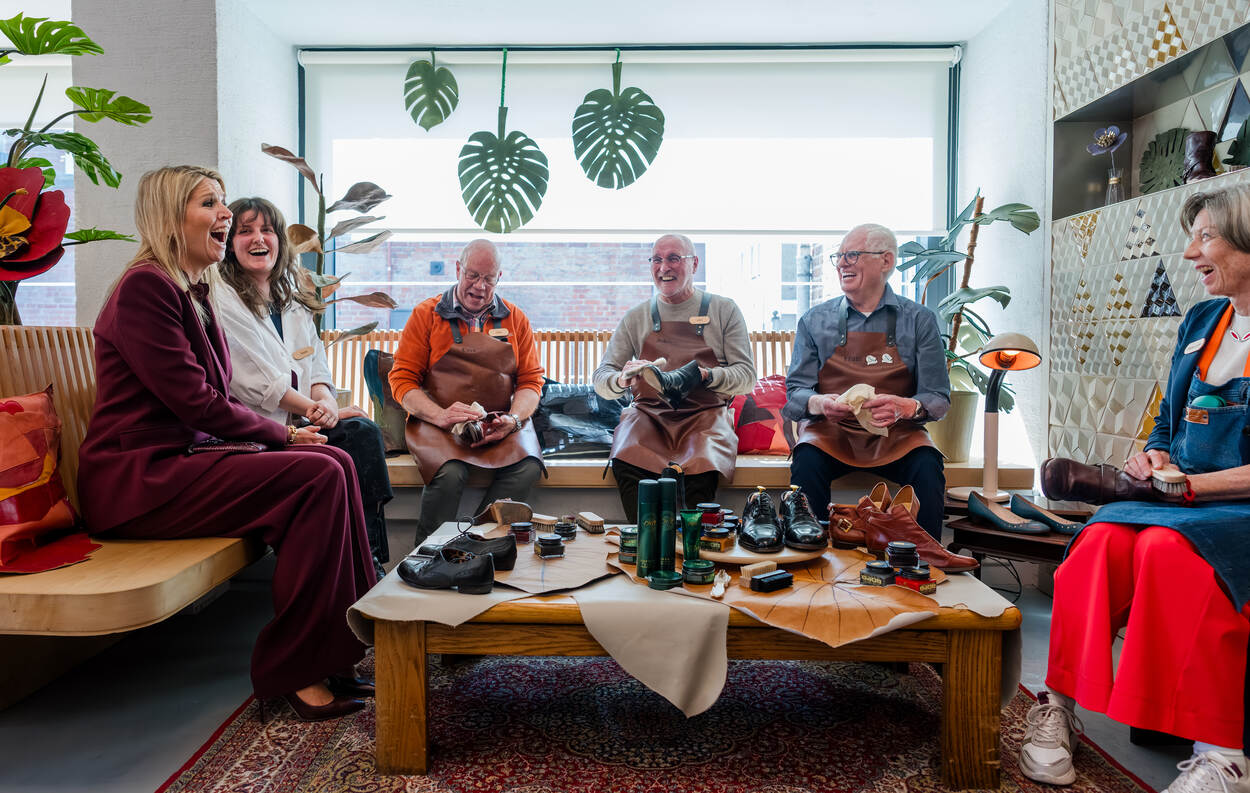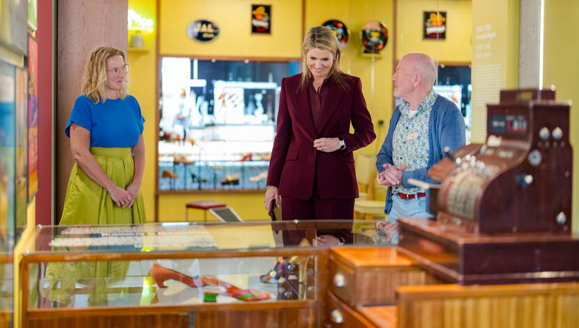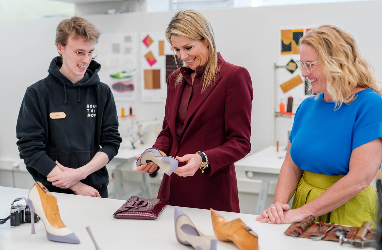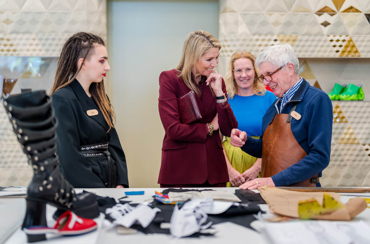 Koningin Máxima brengt een werkbezoek aan museum het Schoenenkwartier. In het in 2022 heropende Schoenenkwartier bevindt zich naast het museum ook een kenniscentrum en het Schoenenlab: een podium voor nieuw ontwerptalent, een professionele werkplaats en een studiecentrum ineen.