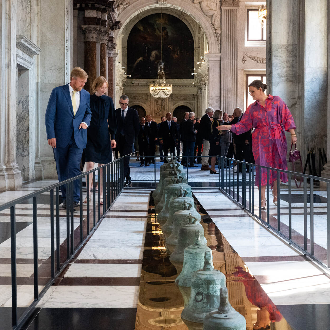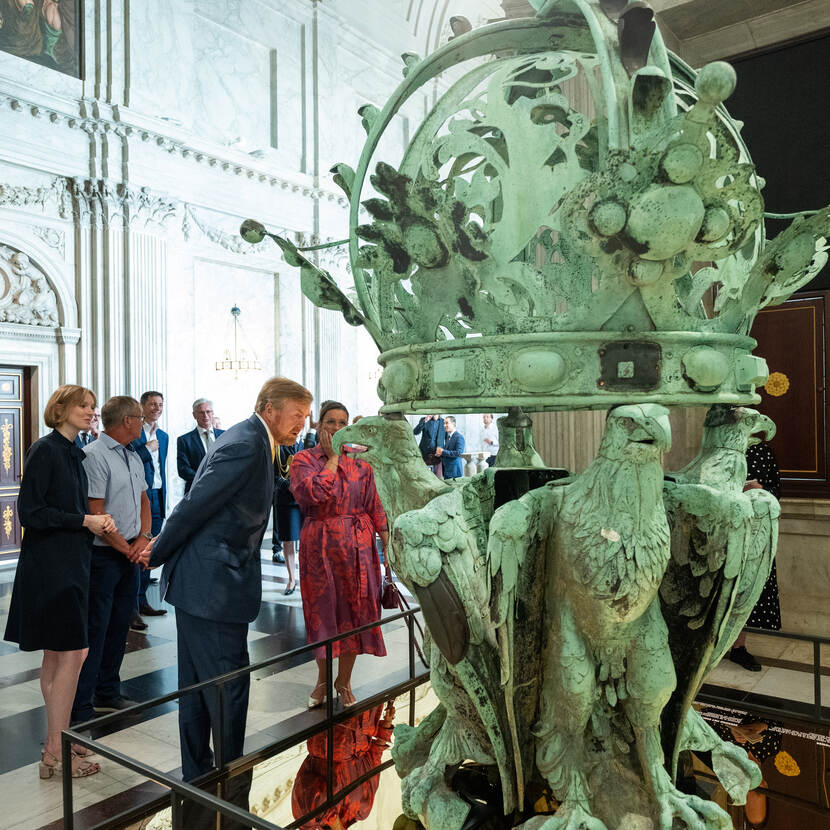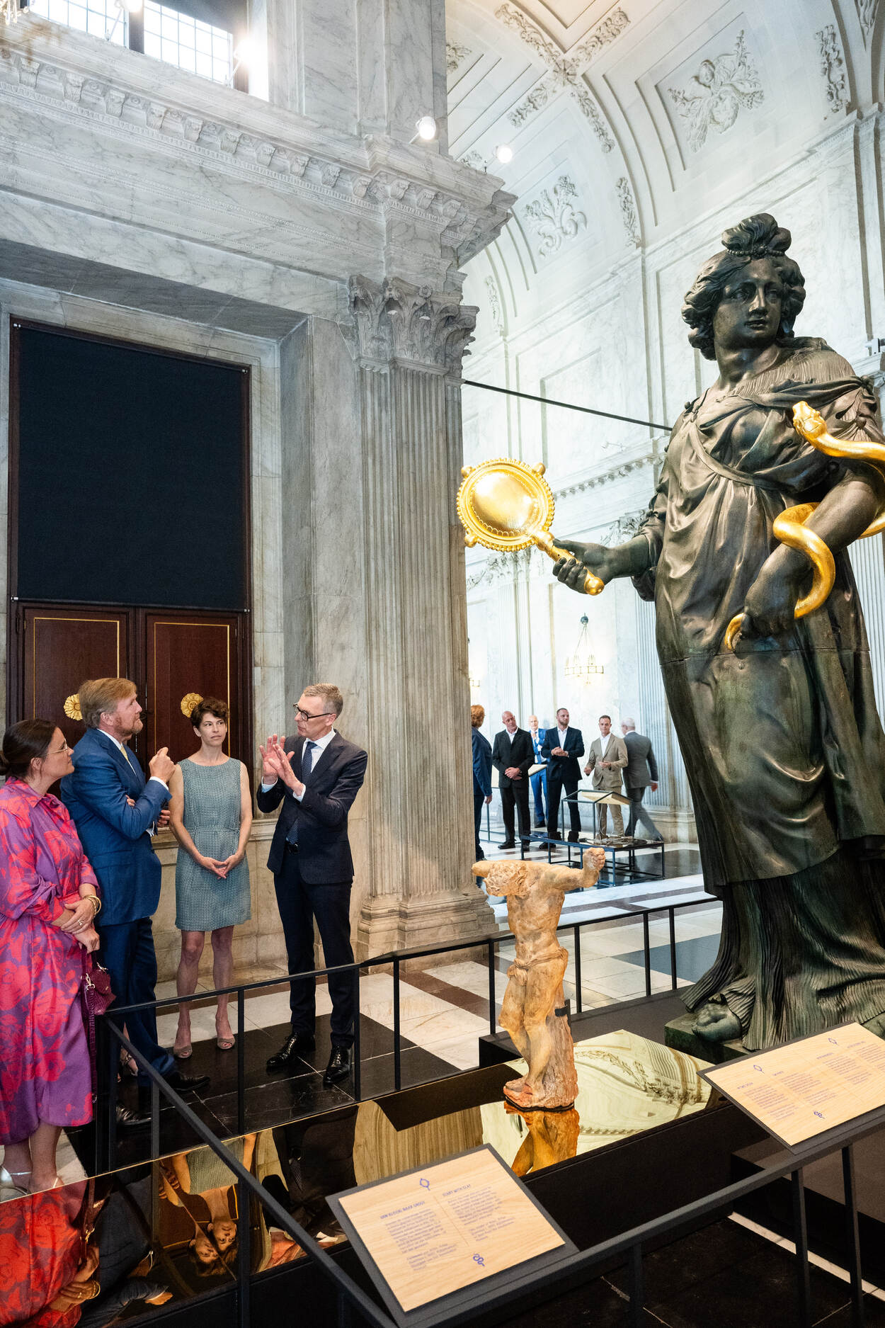 Koning Willem-Alexander opent de tentoonstelling ‘Hoog! Kijk omhoog. Een dak vol verhalen’. Eind 2023 is door het Rijksvastgoedbedrijf het groot onderhoud van het dak van het Koninklijk Paleis gestart waarbij onder meer de toren en de beelden worden gerestaureerd. Een aantal kunstwerken die normaal op het dak van het paleis staan is tot en met 22 september van dichtbij te bekijken.