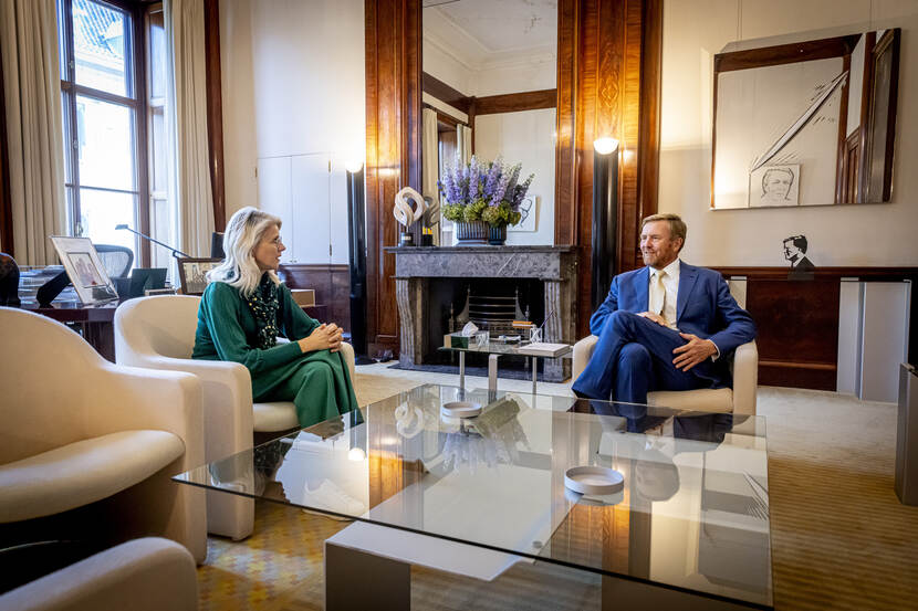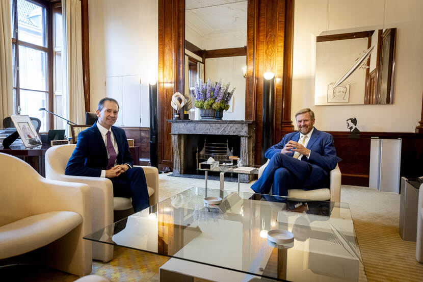 Koning Willem-Alexander ontvangt achtereenvolgens de minister van Sociale Zaken en Werkgelegenheid, tevens viceminister-president, de heer dr. Y.J. van Hijum, de minister van Volkshuisvesting en Ruimtelijke Ordening, tevens viceminister-president, mevrouw mr. drs. M.C.G. Keijzer, en de minister van Financiën, de heer E. Heinen MSc. De Koning ontvangt de bewindspersonen van kabinet-Schoof voor een (hernieuwde) kennismaking.