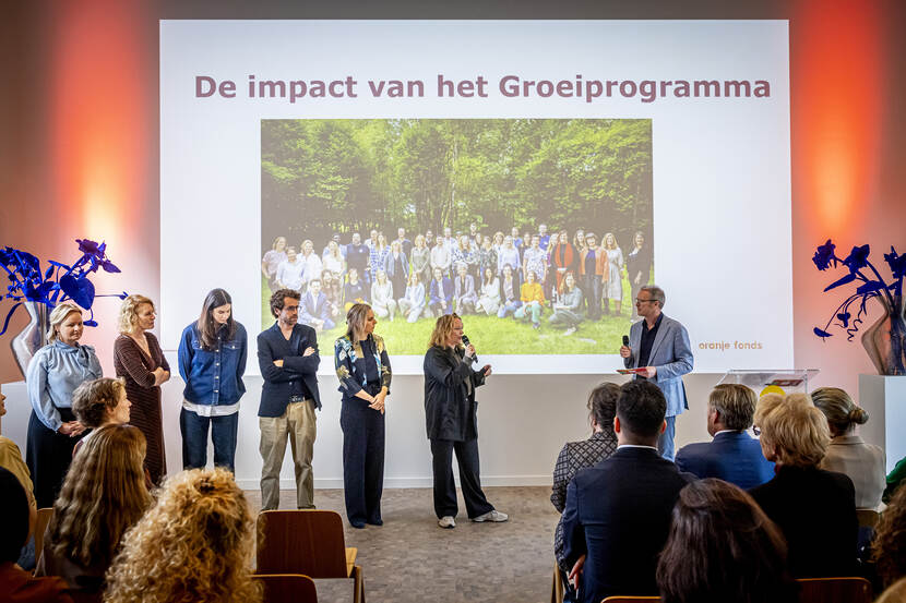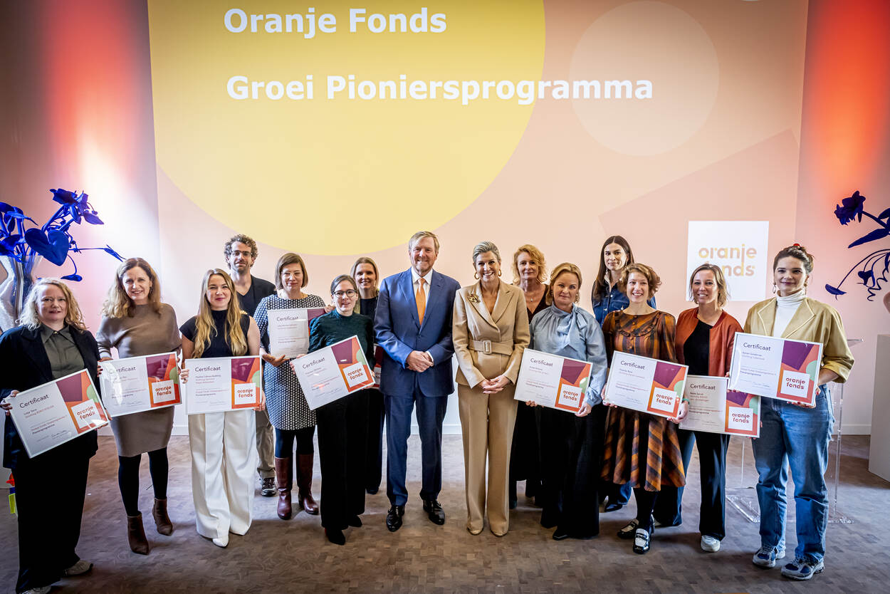 Koning Willem-Alexander en Koningin Máxima reiken groeicertificaten uit aan twaalf sociale organisaties die het Oranje Fonds Groeiprogramma met succes hebben doorlopen. In de vijfde editie - Groeiprogramma V: Pioniersprogramma - stonden innovatie, verbetering en vernieuwing centraal. Het Koninklijk Paar is beschermpaar van het Oranje Fonds.