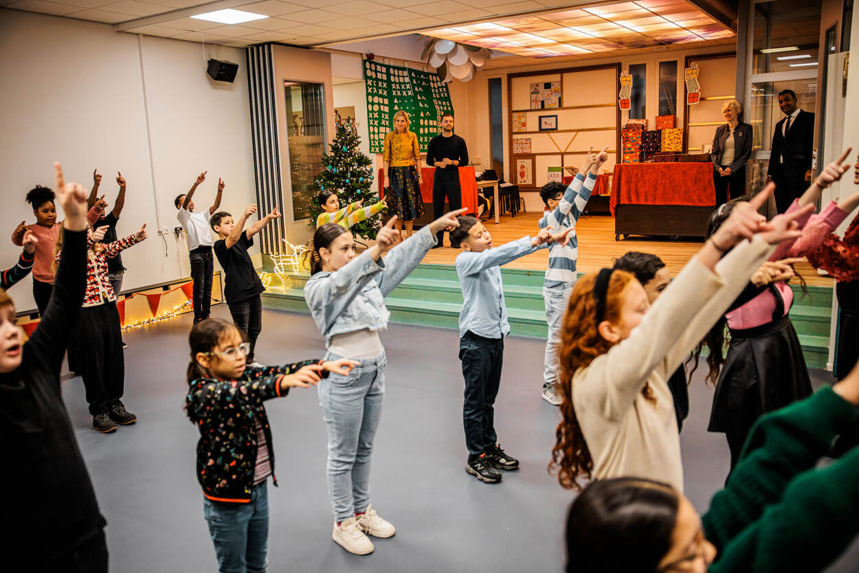 Koningin Máxima bezoekt als erevoorzitter van Méér Muziek in de Klas de Emmausschool. De Emmausschool is een van de twaalf basisscholen die meedoet aan de grootste schoolband van Nederland tijdens het jaarlijks Kerst Muziekgala. De voorbereidingen voor het optreden brengen direct muziek- en dansonderwijs in de school.