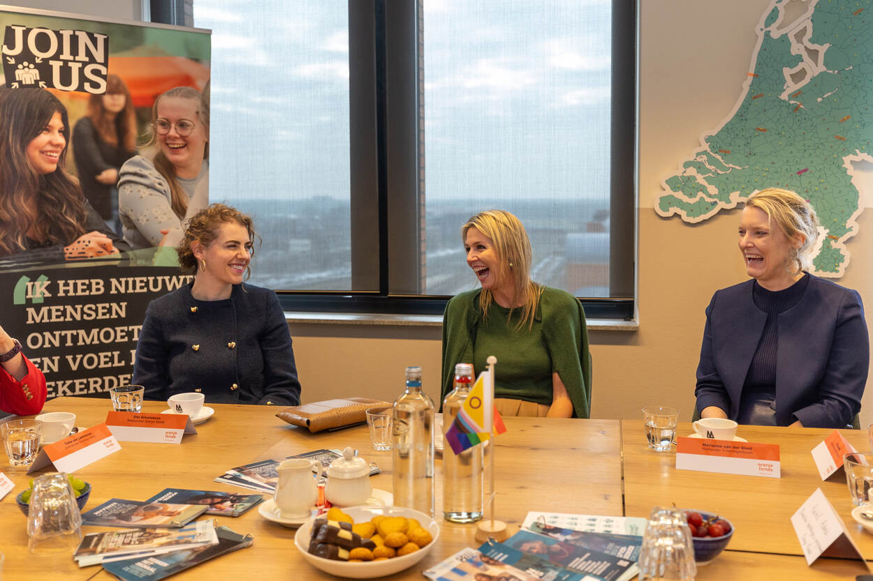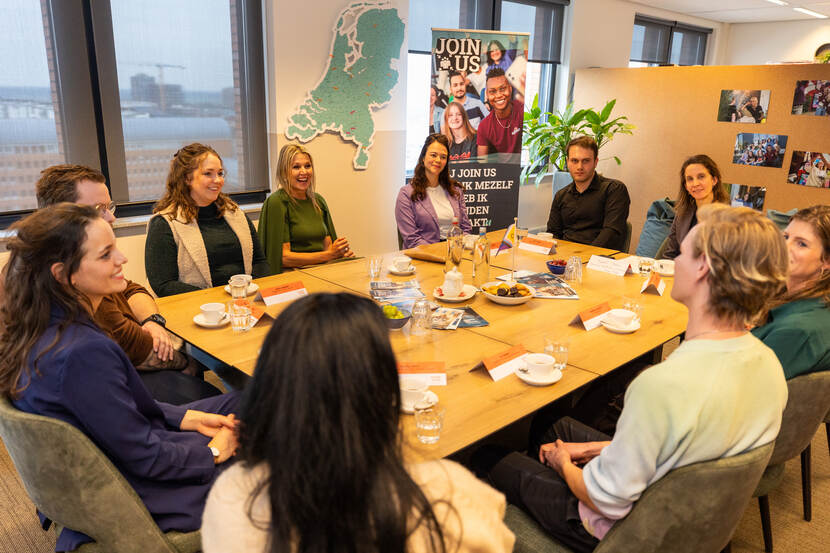 Koningin Máxima brengt een werkbezoek aan Stichting Join Us. Join Us zet zich in voor het versterken van de mentale gezondheid van jongeren met eenzaamheidsgevoelens. De stichting heeft een preventief programma ontwikkeld om eenzaamheid bij jongeren van 12 tot 30 jaar te verminderen. Join Us is één van de winnaars van een Appeltje van Oranje 2024 van het Oranje Fonds.