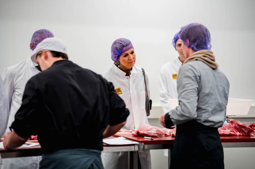 Koningin Máxima bezoekt SVO vakopleiding food. Het bezoek staat in het teken van mbo-vakonderwijs en de samenwerking met de foodsector.
