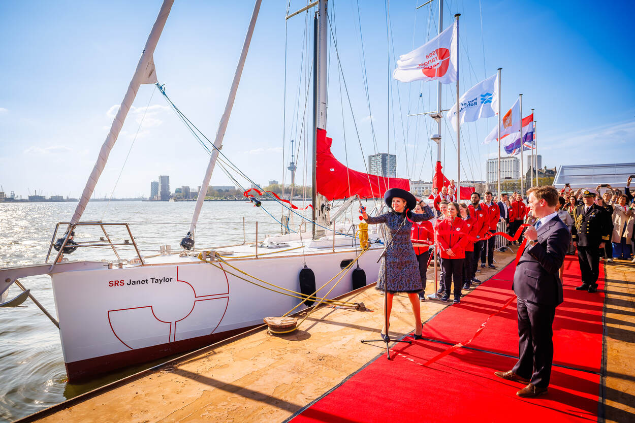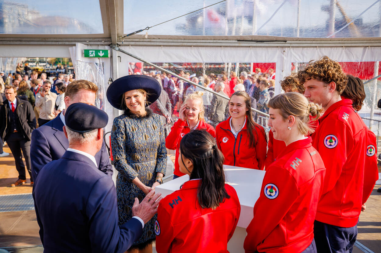 Koningin Máxima doopt het nieuwe innovatieve zeilschip van de sociale onderneming Sea Ranger Service.